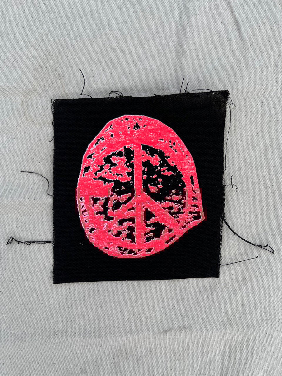 • Silver or fluro pink on black canvas.